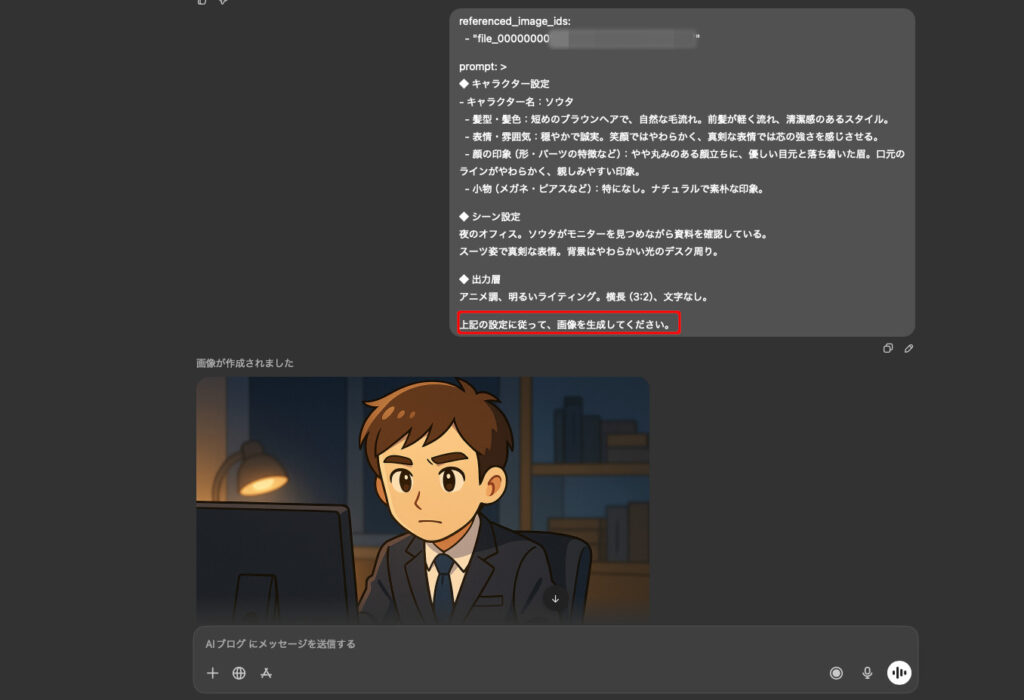 💬 プロンプト例(file_12が、ソウタの表情シートを再アップして取得したファイルID)