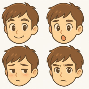 また、生成ごとに微妙な差が出る場合は、同じ表情シートを毎回添付することで安定度が上がります。