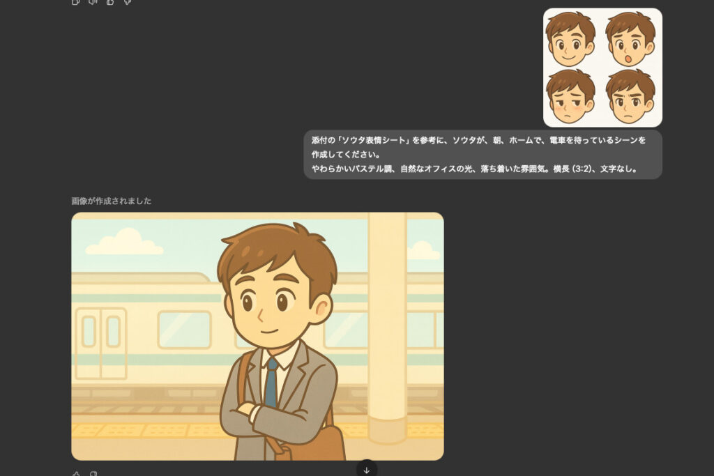 この記事では、ChatGPTの画像生成機能を使って、“同じキャラでシーンを変える”方法を2ステップで解説します。