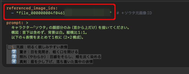 キャラを長期的に使うときは、元画像・表情シートを保管し、再アップしてファイルIDを取得し、プロンプトのファイルIDを更新しましょう。