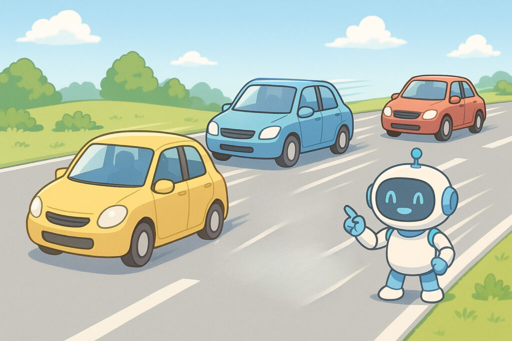 🚗 考え方:1本の道路を“同時に走っているように見せる”